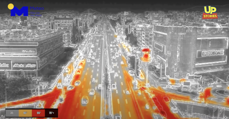Πτήσεις με drone πάνω από περιοχές της Αθήνας με χρήση θερμικής κάμερας πραγματοποίησε η ομάδα Up Stories σε συνεργασία με το meteo.gr την Παρασκευή 25 Ιουνίου 2021 για την χαρτογράφηση περιοχών που συμβάλλουν στην αστική θερμική νησίδα.