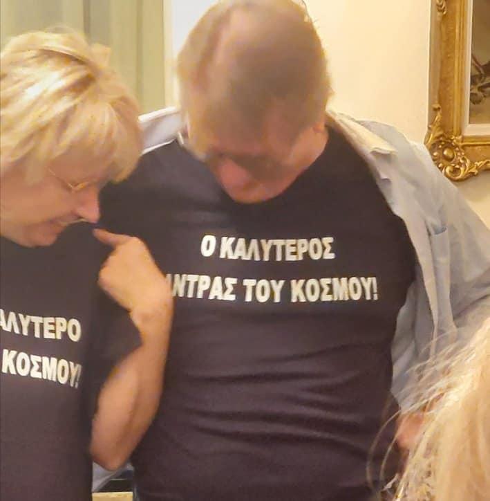 «Προσέξτε την αντίδρασή της όταν διάβασε τι έγραψα στην δικιά μου μπλούζα…» έγραψε σε ανάρτησή του ο κ. Νάρης, παραθέτοντας και τα απαραίτητα οπτικά… αποδεικτικά στοιχεία.