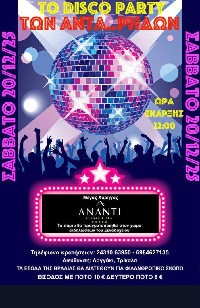 Το θρυλικό πάρτι των ΑΝΤΑ.ΡΗΔΩΝ, το event που κατάφερε να γίνει θεσμός στην πόλη, θυμίζοντας το πώς διασκέδαζαν οι παλαιότεροι, επιστρέφει δυναμικά για ακόμη μία ανεπανάληπτη βραδιά. Αυτή τη φορά, η καρδιά του πάρτι χτυπά στο Ξενοδοχείο ΑΝΑΝΤΙ, με τον χώρο εκδηλώσεων να μεταμορφώνεται σε ένα premium dance floor που υπόσχεται νύχτα… υψηλών δονήσεων.