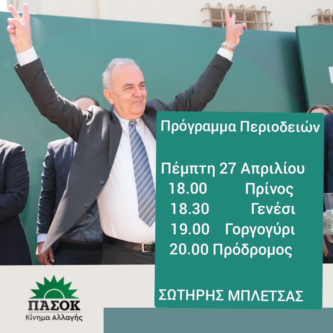 Το πρόγραμμα του Σωτήρη Μπλέτσα την Πέμπτη 27 Απριλίου
