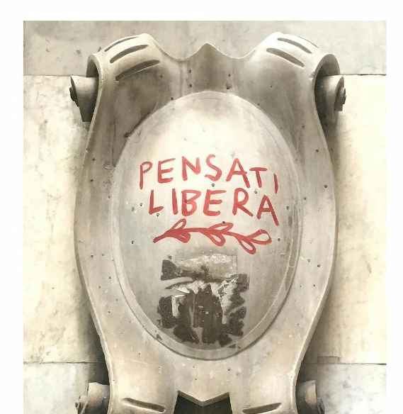 «Σκέψου ελεύθερα», γράφει με μεγάλα κεφαλαία γράμματα.