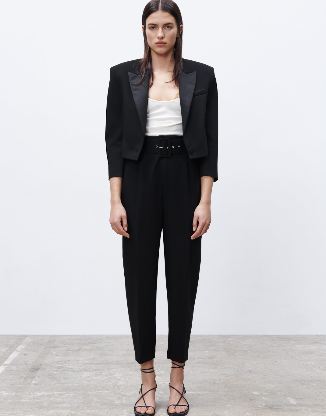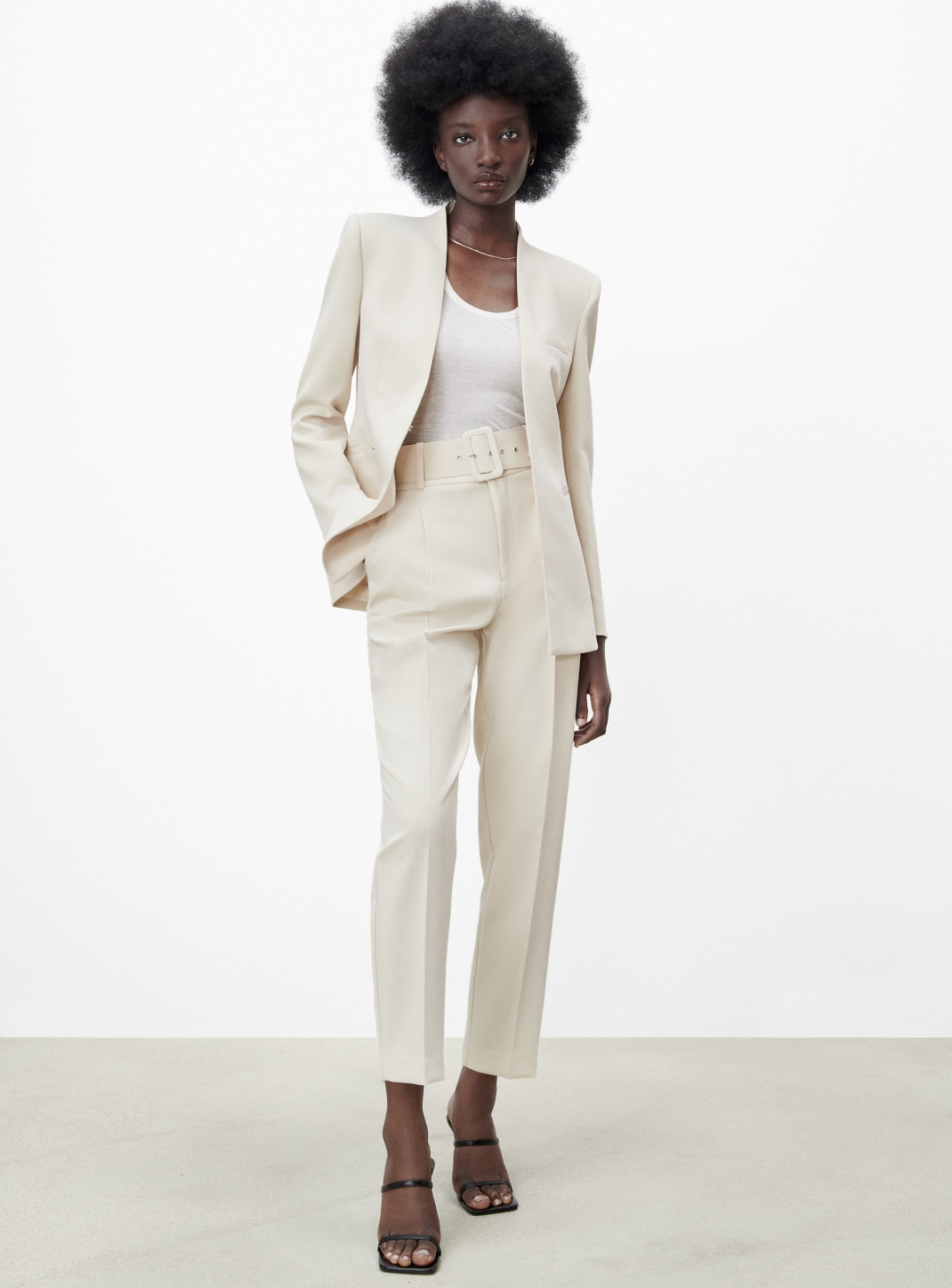 Ψηλόμεσο, με πιέτες που πετυχαίνουν το ιδανικό loose fit, σταματά στο ύψος του αστραγάλου και λεπταίνει το πόδι, ενώ η ζώνη από το ίδιο ύφασμα το κάνει πιο σικάτο και εντυπωσιακό.