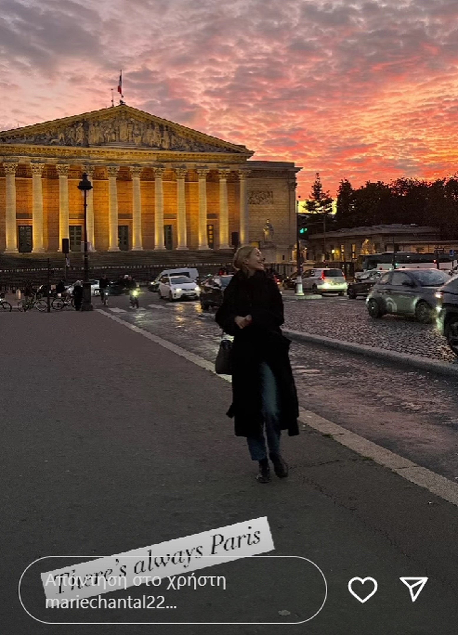 “Τhere is always Paris” έγραψε στη φωτογραφία με τη Μαρία Ολυμπία να ποζάρει στη γαλλική πρωτεύουσα με φόντο τον μαγικό ουρανό, κάνοντας αναφορά στη διάσημη ταινία Casablanca και την εμβληματική φράση “We’ll always have Paris”.