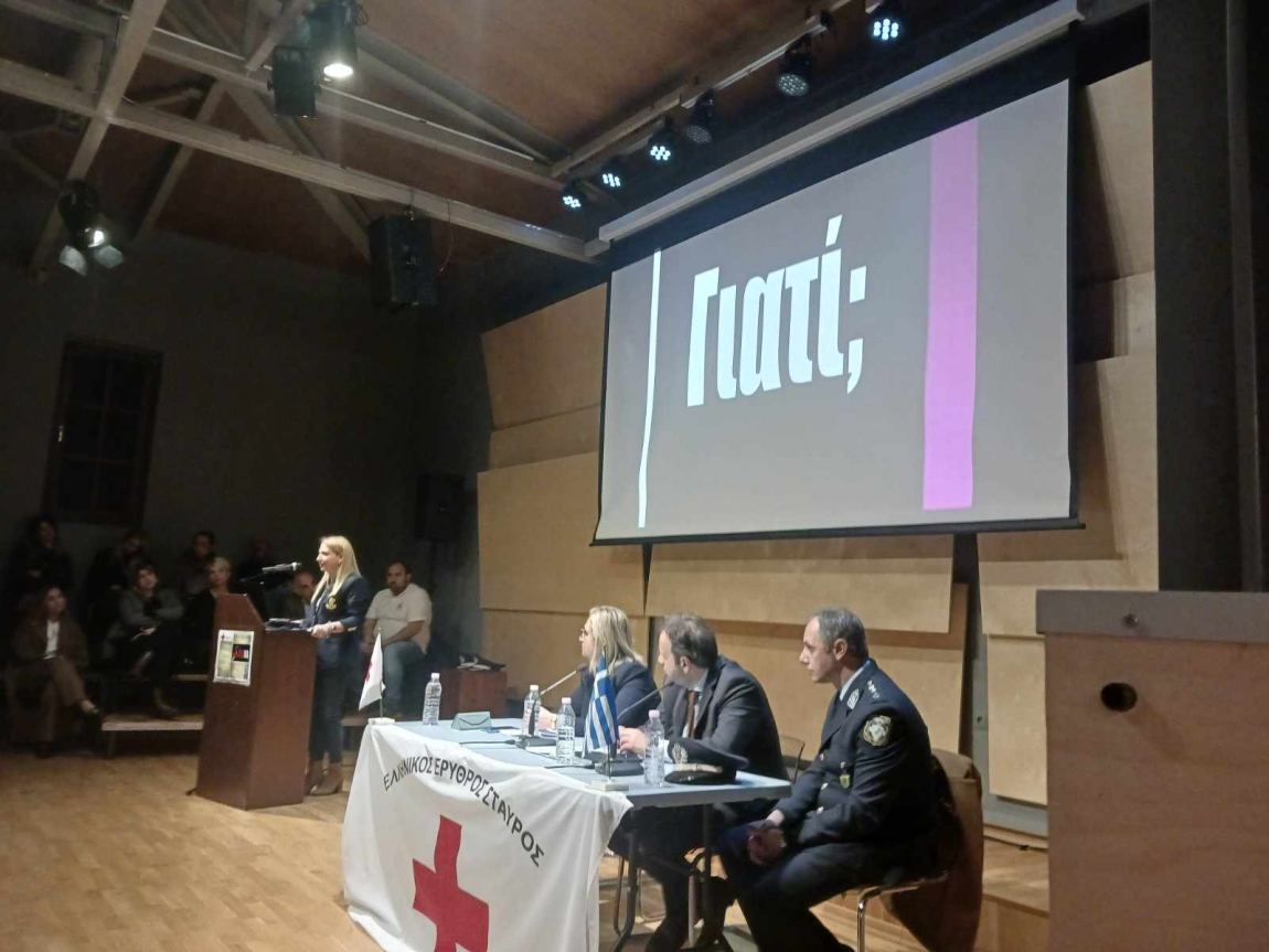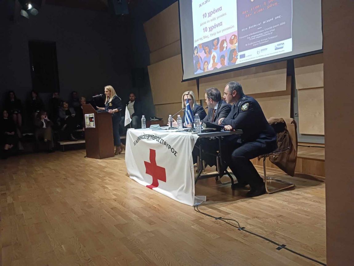 Μια συντονισμένη και άρτια εκδήλωση ολοκληρώθηκε το απόγευμα της Τρίτης από το Περιφερειακό Τμήμα Τρικάλων του Ελληνικού Ερυθρού Σταυρού με θέμα ”Ενδοοικογενειακή βία” στην αίθουσα εκδηλώσεων του Μουσείου Τσιτσάνη. Τo παρών έδωσαν από την πλευρά του Δ.Τρικκαίων, η Αντιδήμαρχος κ.Σ. Αλεστά και η κ.Εφη Λεβέντη, ο Αστυνομικός Διευθ. Τρικάλων κ.Δ.Μήτραινας, ο Υποδιευθυντής κ. Θ. Καππάς, ο Διοικητής Τροχαίας κ .Κ.Κωστακόπουλος, η δημοτική σύμβουλος κ.Λώρεν Κασιοπούλου εκ μέρους της αντιπολίτευσης του Δ.Τρικκαίων, τα μέλη του Ερυθρού Σταυρού και αρκετοί πολίτες.
