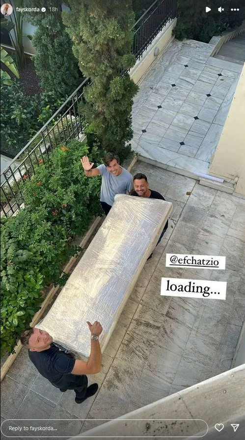Αυτή τη φορά έδωσε ένα πλάνο από το εξωτερικό του σπιτιού και συγκεκριμένα φωτογράφησε τον αρχιτέκτονα με την ομάδα του να μεταφέρουν επάνω ένα ακόμη κομμάτι που θα συμβάλει στην ολοκλήρωση του design στον χώρο. Οι εργασίες άλλωστε συνεχίζονται και τα έπιπλα προφανώς δεν έχουν όλα προστεθεί στο εσωτερικό του χώρου.