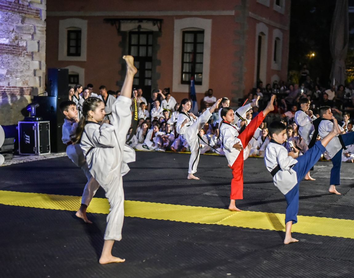 Η εκδηλωση ξεκινησε με τους 200 και πλέον μικρούς αθλητές του Συλλόγου οι οποίοι εκτέλεσαν το 2ο μέρος της ύλης των εξετάσεων έγχρωμων ζωνών. Εξεταστές ήταν οι Δακαλοι Απόστολος Ιακωβάκης από την Λάρισα,ο Χρήστος Ντιντιος από τον Τύρναβο,ο Παναγιώτης Φλισκας από την Καρδίτσα,ο Θάνος Παπαπουλης από την Αγια και ο Κώστας Ποζαπαλιδης από τον Βόλο.