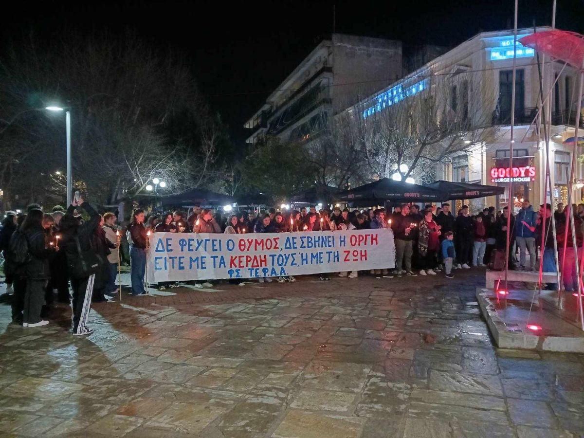 Εις μνήμην των 57 αθώων θυμάτων της σιδηροδρομικής τραγωδίας, που συγκλόνισε το πανελλήνιο μια ημέρα σαν την σημερινή το 2023, φοιτητές και φοιτήτριες, μαθητές και μαθήτριες κρατώντας αναμμένες δάδες & κεριά, αυτοδιοικητικοί, υγειονομικοί, απλοί πολίτες, ηλικιωμένοι, ακόμη και… νήπια βροντοφώναξαν: «Σήψη και μπόχα το σύστημα εκπέμπει, ποτέ δεν θα ξεχάσουμε το έγκλημα στα Τέμπη».