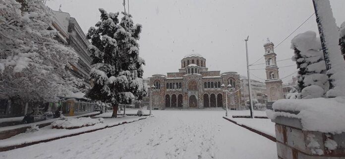 Η σφοδρή χιονόπτωση σε όλη τη Μαγνησία και στον Βόλο συνεχίζεται και με ανακοίνωση και του Δήμου Βόλου καλείται ο πληθυσμός να μη μετακινείται χωρίς σοβαρό λόγο, ώστε να διευκολύνεται ο αποχιονισμός των δρόμων.
