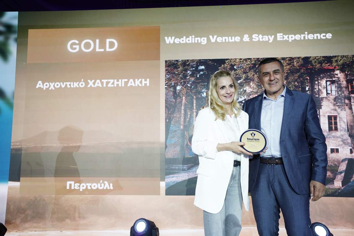 Μια ακόμη σημαντική διάκριση για τον ελληνικό τουρισμό και, πιο συγκεκριμένα, για τη Θεσσαλία και τα Τρίκαλα, ήρθε να προστεθεί στον φετινό θεσμό των Tourism Awards 2025. Το ξενοδοχείο “Αρχοντικό Χατζηγάκη”, ένας μοναδικός προορισμός φιλοξενίας στην καρδιά της Πίνδου, κατέκτησε Χρυσό Βραβείο στην κατηγορία Wedding Venue & Stay Experience, ανάμεσα σε μερικά από τα κορυφαία ξενοδοχεία και τουριστικές επιχειρήσεις της χώρας.