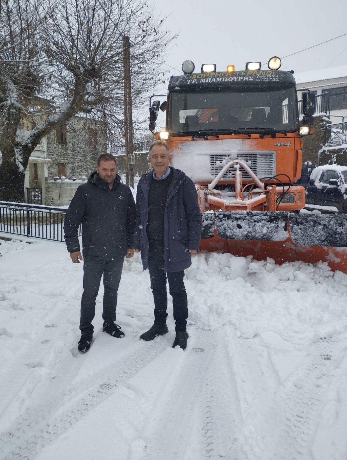 Έντονες οι χιονοπτώσεις στον ορεινό όγκο του Νομού Τρικάλων με τα μηχανήματα της