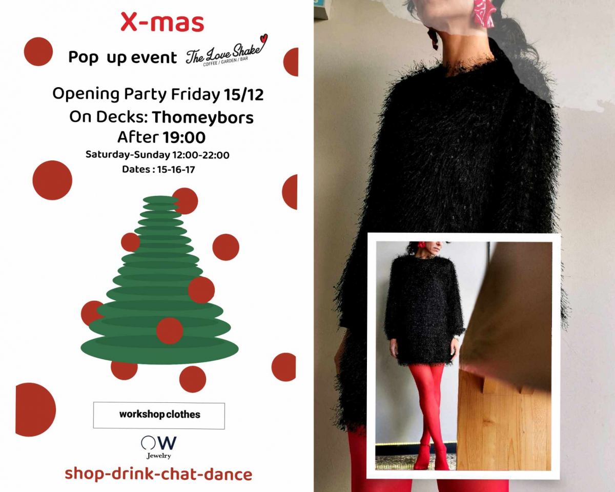 Όλη η νέα συλλογή των Workshop clothes θα βρίσκεται στο POP UP EVENT Παρασκευή/ Σάββατο & Κυριακή.. 15.16.17 Δεκεμβρίου στο μοναδικό Love Shake στα Μανάβικα. Και λαμπερά αξεσουάρ από OW…για να κάνετε απίστευτους συνδυασμούς !Την Παρασκευή σας περιμένουμε στο μεγάλο opening party μετά τις 7.00 το απόγευμα. Στα decks ο dj Thomey Bors