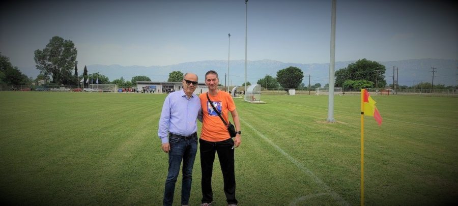 Στην φωτό με τον συνάδελφό του, ιατρό Κίμωνα Χαχάμη, με φόντο το καταπληκτικό αθλητικό κέντρο του Ερασιτέχνη στην Σωτήρα και με τον Μεγαλοκαλυβιώτη επιστήμονα και φίλο του ΑΟΤ να προσφέρει απλόχερα  την υποστήριξή του, στο εντυπωσιακό εγχείρημα της νέας εποχής αλλά και να αποδίδει τα συγχαρητήριά του στον πρόεδρο της διοίκησης ο οποίος πρότεινε και έκανε τα αδύνατα δυνατά για να πραγματοποιηθεί αυτό το σημαντικό  όσο και ιστορικό έργο στις τάξεις του ΑΟ ΤΡΙΚΑΛΑ