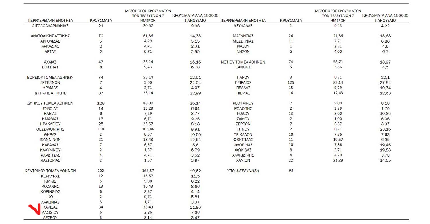 Να σημειωθεί ότι 24ωρη καταγραφή κρουσμάτων κάτω από τα 40 είχε να εμφανιστεί από τα τέλη του περασμένου Οκτωβρίου.