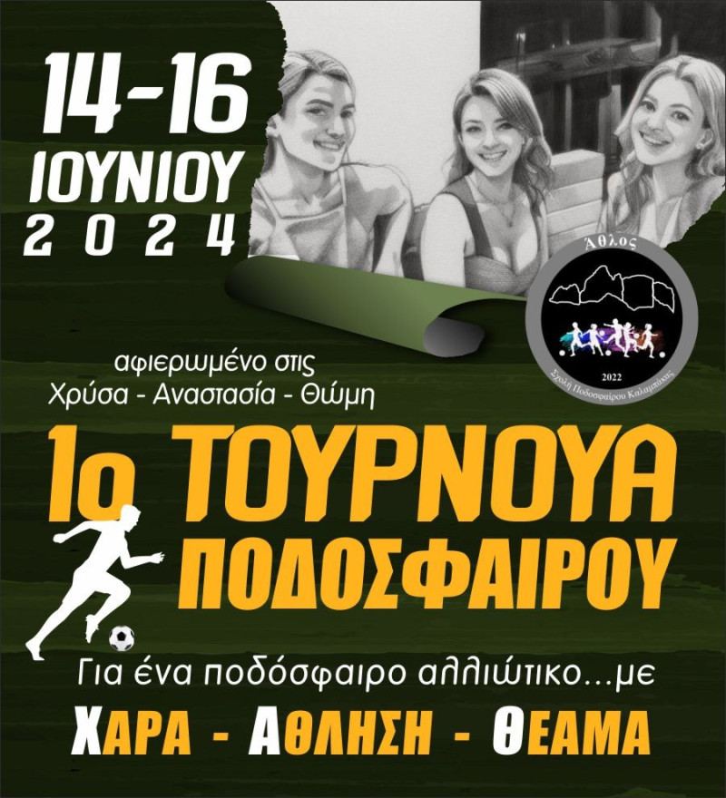Η Σχολή Ποδοσφαίρου “Άθλος Καλαμπάκας” ανακοινώνει το πρώτο ποδοσφαιρικό τουρνουά στο Δημοτικό Στάδιο Καλαμπάκας και στο γήπεδο Καστρακίου, υπό την αιγίδα της Περιφέρειας Θεσσαλίας, στη θύμηση των, Χρύσας(ΧΑΡΑ)-Αναστασίας (ΑΘΛΗΣΗ) – Θώμης (ΘΕΑΜΑ) που θα γίνει στη πόλη μας το διάστημα 14-16 Ιουνίου, παράλληλα με διάφορες άλλες ΔΡΑΣΕΙΣ, με τη συμμετοχή ομάδων απ’ όλη την Ελλάδα.
