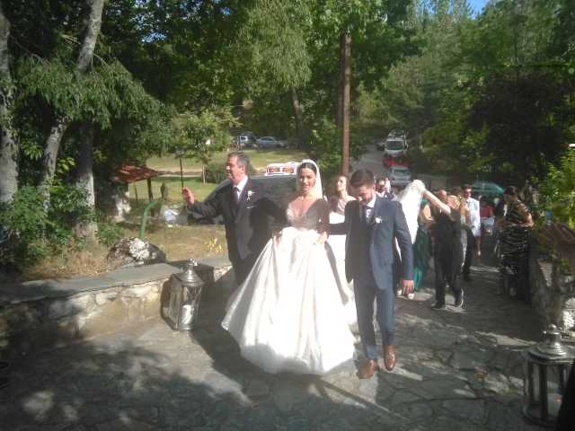 Ο γαμπρός περίμενε υπομονετικά τη νύφη στον υπέροχα διακοσμημένο χώρο έξω από το εξωκκλήσι και η νύφη έφτασε ως μαντόνα της Αναγέννησης, συνοδευόμενη από τον πατέρα της Νίκο Παπανικολάου και τον αδελφό της Ηλία, υπό τους ήχους παραδοσιακής μουσικής.
