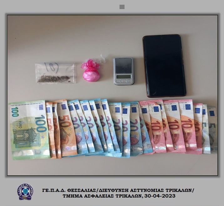 - Στα Τρίκαλα, συνελήφθη προχθές (28-04-2023) το μεσημέρι, από αστυνομικούς του Τμήματος Ασφάλειας Τρικάλων, ένας αλλοδαπός, για παράβαση της νομοθεσίας περί ναρκωτικών, διότι στην κατοχή του και σε νομότυπη έρευνα που διενεργήθηκε στην οικία του, βρέθηκαν και κατασχέθηκαν: