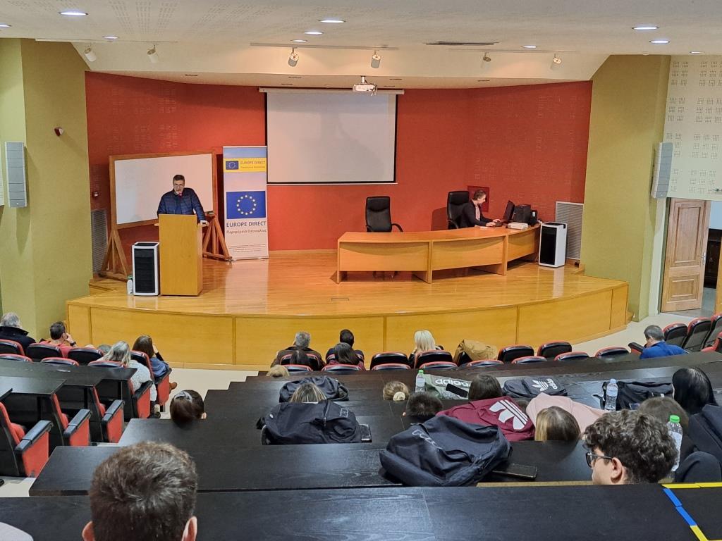 Στην ημερίδα απηύθυναν χαιρετισμό ο κος Νταλός Γεώργιος Αναπληρωτής Πρόεδρος του Τμήματος Δασολογίας, Επιστημών Ξύλου και Σχεδιασμού του Πανεπιστημίου Θεσσαλίας, ο κος. Βασίλης Χατζηκαμαγιάννης Διευθυντής του Περιφερειακού Ταμείου Ανάπτυξης Περιφέρειας Θεσσαλίας και του Europe Direct Θεσσαλίας, η κα.Βραζάλη Χαρά εκ μέρους της Διεύθυνσης Δευτεροβάθμιας Εκπαίδευσης Νομού Καρδίτσας, και ο κ. Αχιλλέας Κωστούλας Υπεύθυνος των Ευρωπαϊκών Προγραμμάτων του Αναπτυξιακού Κέντρου Θεσσαλίας.
