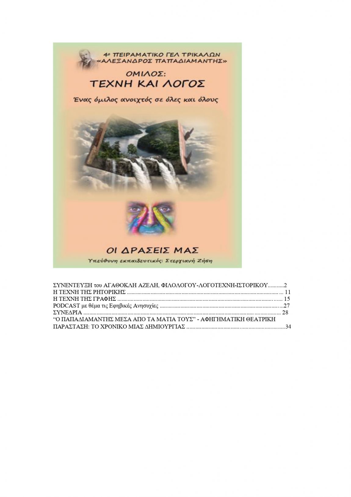 4o Πειραματικό ΓΕΛ Τριικάλων “ΑΛΕΞΑΝΔΡΟΣ ΠΑΠΑΔΙΑΜΑΝΤΗΣ” ΤΕΧΝΗ ΚΑΙ ΛΟΓΟΣ: ΟΙ ΔΡΑΣΕΙΣ ΤΟΥ ΟΜΙΛΟΥ