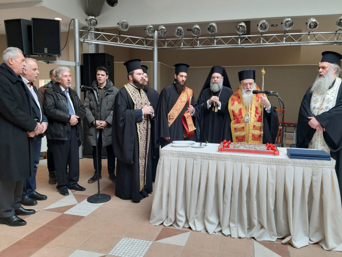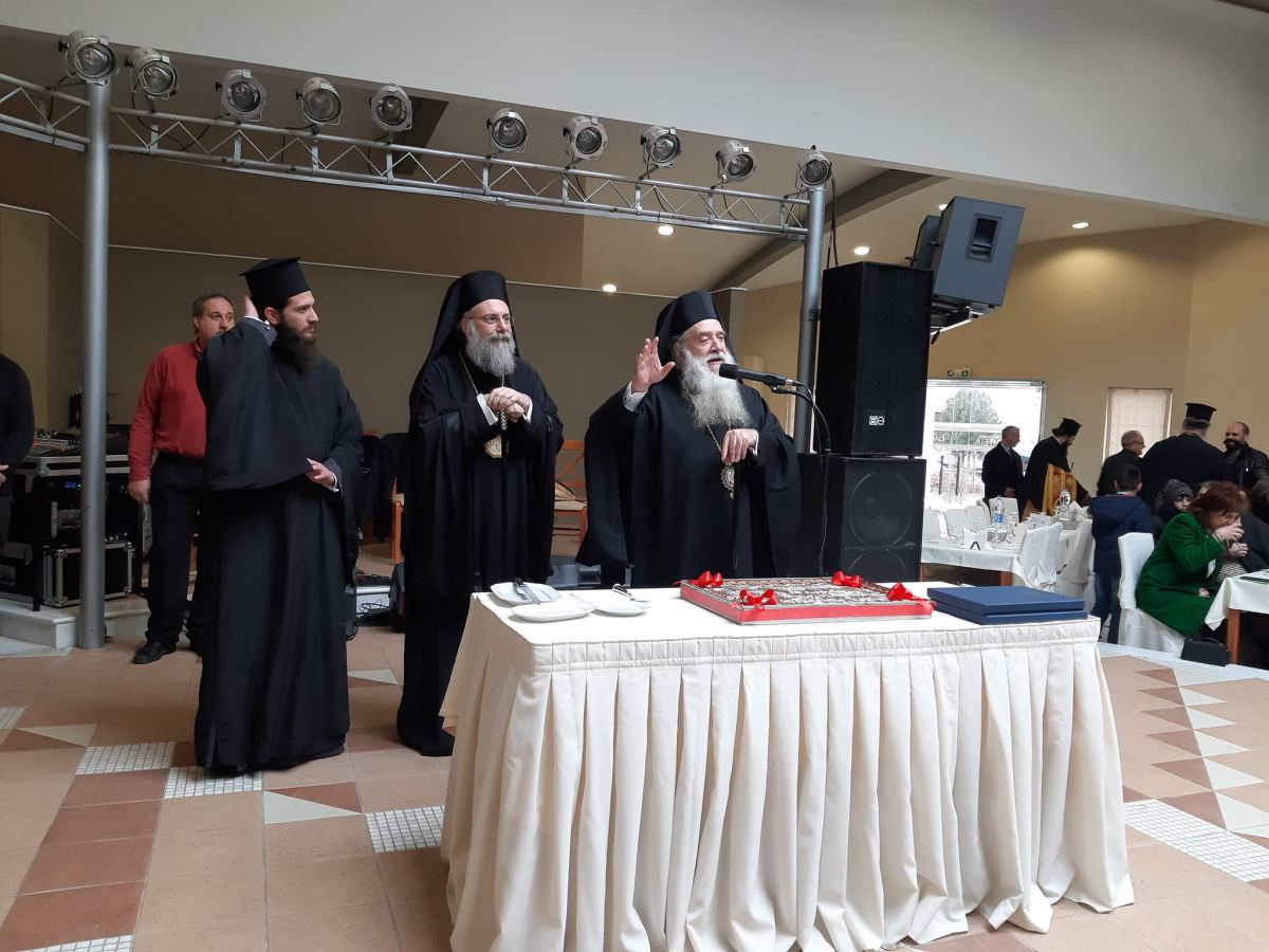 στη 1:00 μετέβη στην αίθουσα εκδηλώσεων του Κέντρου «Πολιτεία», στο 6ο χλμ. Εθνικής οδού Τρικάλων-Καρδίτσης στην Αγία Κυριακή, όπου ευλόγησε την Αγιοβασιλόπιτα του Γενικού Φιλοπτώχου Ταμείου της Ιεράς Μητροπόλεως Τρίκκης, Γαρδικίου και Πύλης. Χιαρετισμό και τις δικές του ευχές μετέφερε και ο Σεβασμιότατος  Μητροπολίτης Σάμου, Ικαρίας και Κορσεών κ. Ευσεβίου. Εν συνεχεία παρακολούθησαν μουσικό πρόγραμμα με οδηγό την δημοτική μας παράδοση. Το παρών έδωσαν στην εκδήλωση, ο Υπουργός κ.Δ.Παπαστεργίου, η Βουλευτής του Σύριζα κ.Μαρίνα Κοντοτόλη, ο Δήμαρχος Τρικκαίων κ.Ν.Σακκάς, εκ μέρους του Περιφερειάρχη Θεσσαλίας, η κ. Γαλλιού,  η Αντιπεριφερειάρχης ΠΕ κ.Χ.Ντιντή, Αντιδήμαρχοι και δημοτικοί σύμβουλοι του Δ.Τρικκαίων και εκπρόσωποι της Αστυνομικής Διεύθυνσης Τρικάλων.