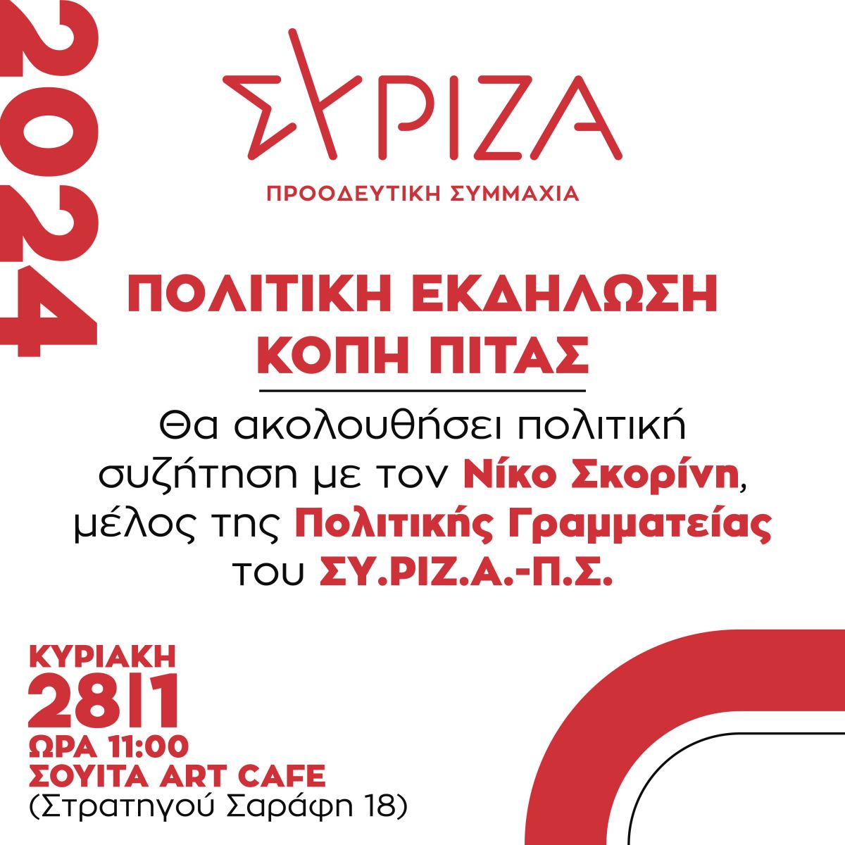 Πρόσκληση της Ν.Ε. ΣΥ.ΡΙΖ.Α.-ΤΡΙΚΑΛΩΝ στην κοπή πίτας