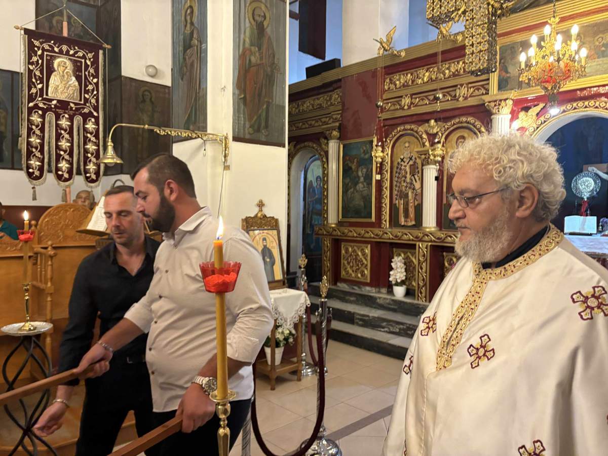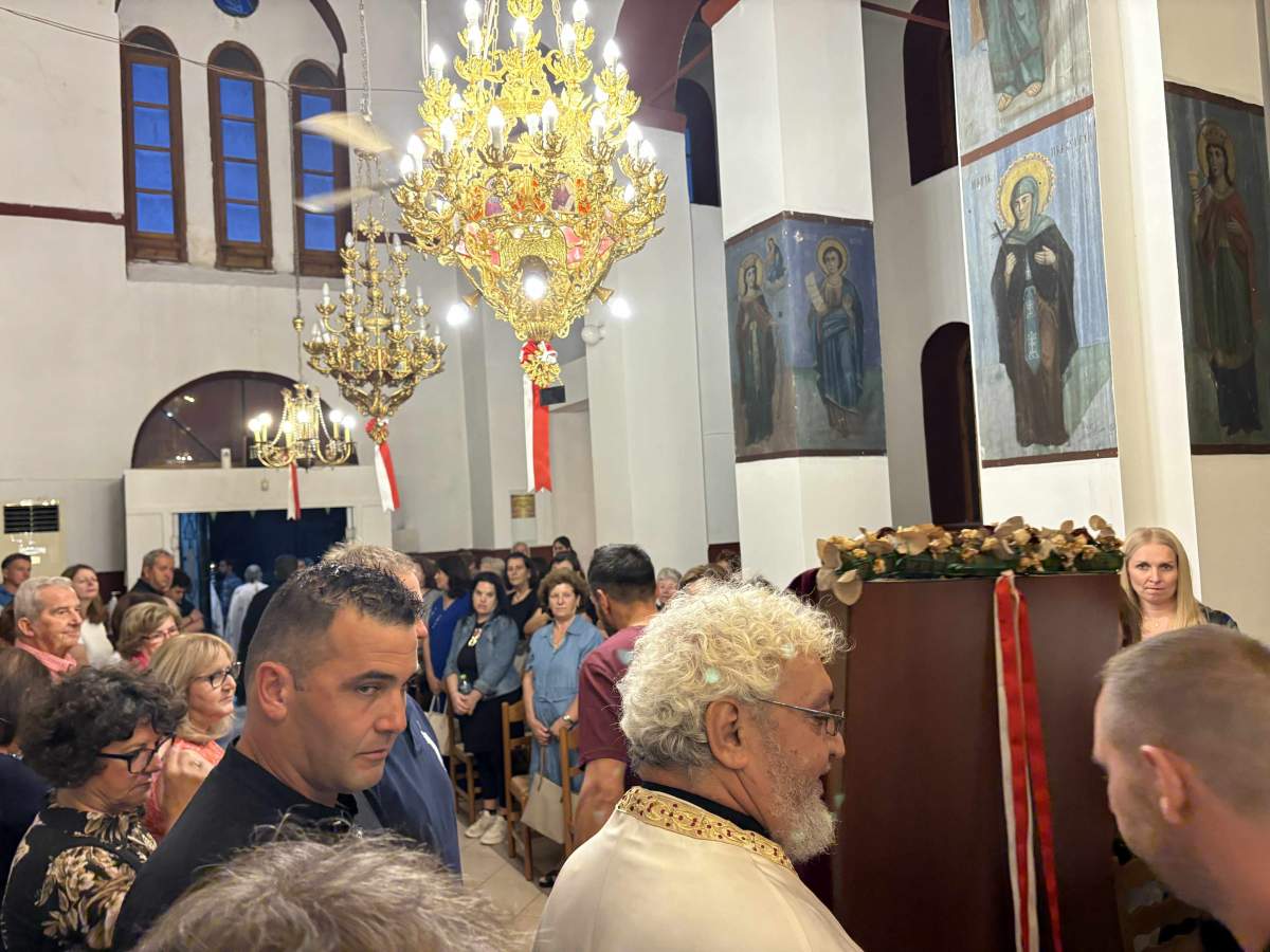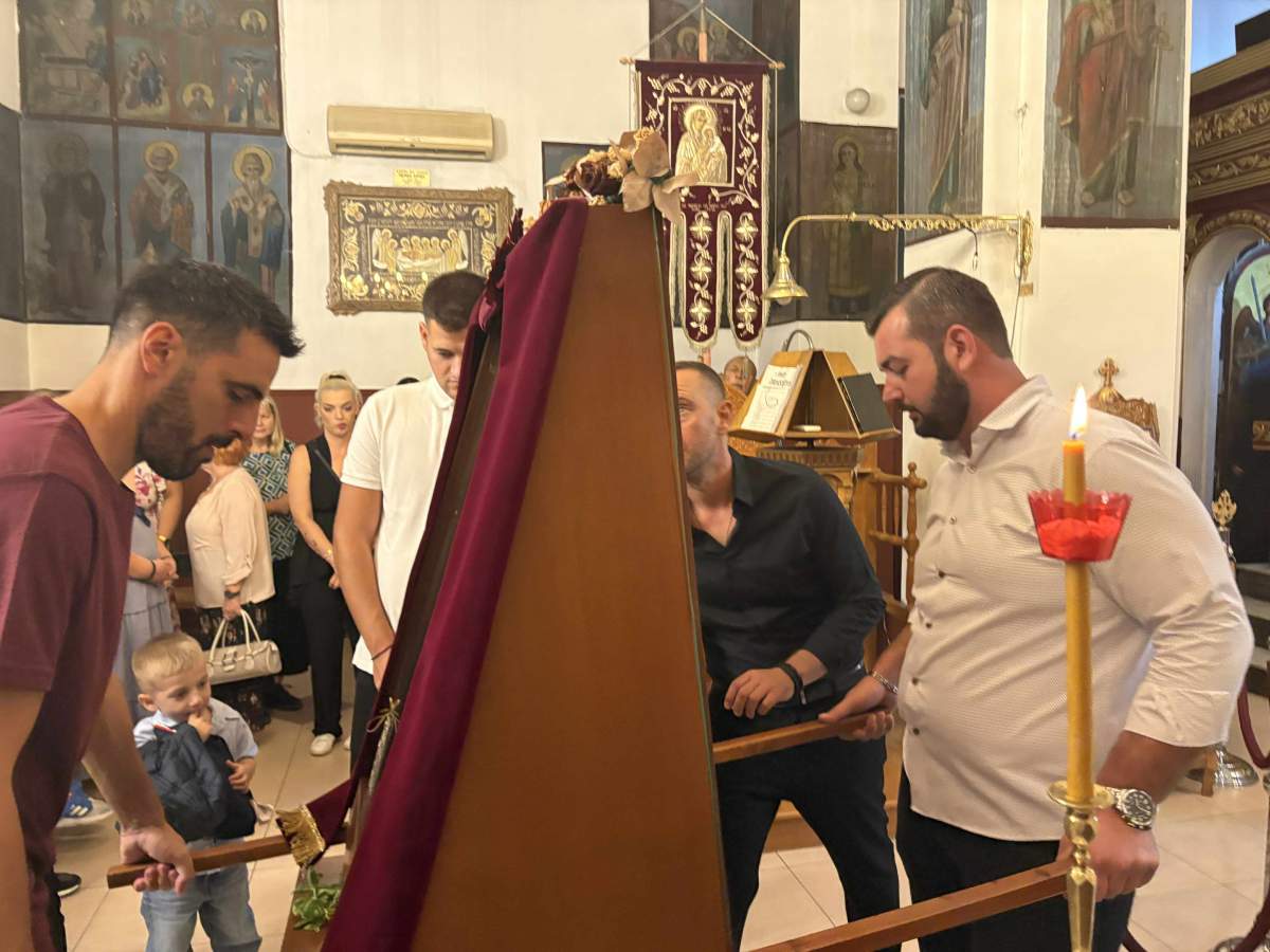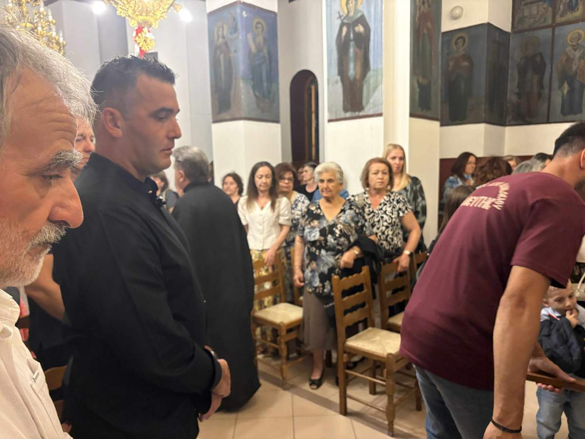 Η θρησκευτική τελετή τελέστηκε από τον πάτερ Αχίλλεα στον Ιερό Ναό του χωριού, με τους πιστούς να ακολουθούν με ευλάβεια και σεβασμό. Στο τέλος του Εσπερινού πραγματοποιήθηκε η καθιερωμένη περιφορά της εικόνας της Παναγίας γύρω από τον Ναό, ενώ στη συνέχεια ακολούθησε αρτοκλασία και ύψωμα.