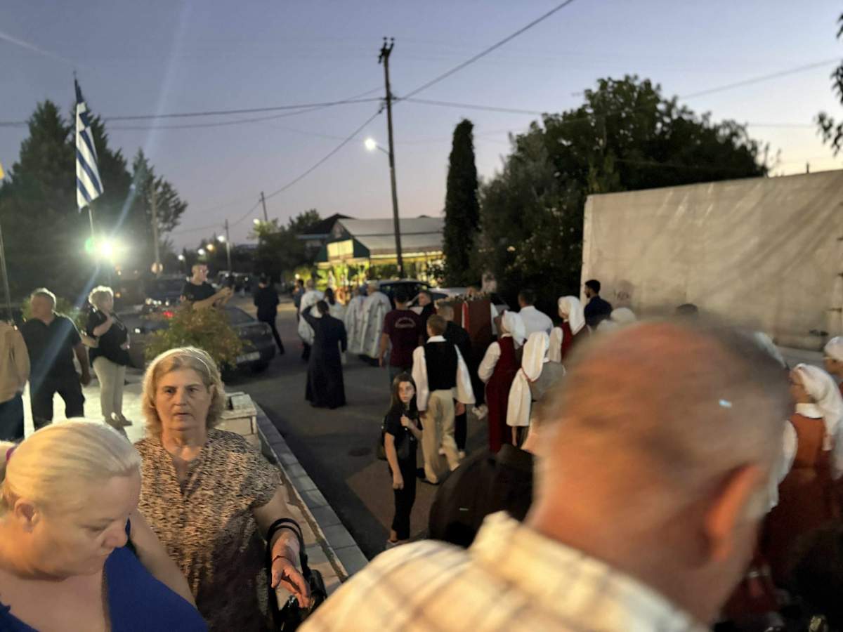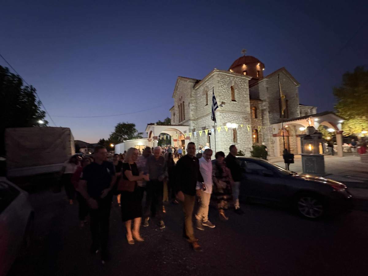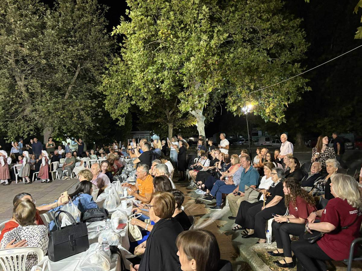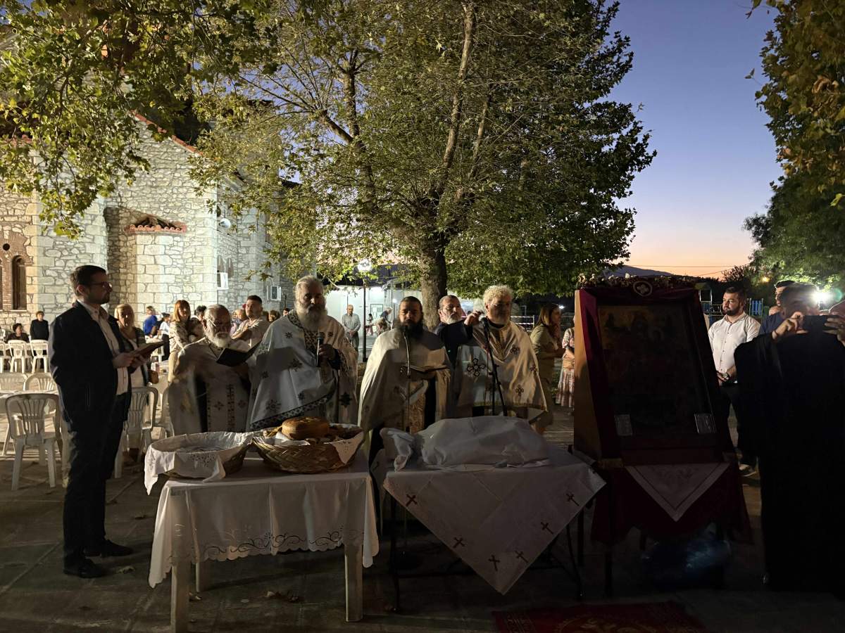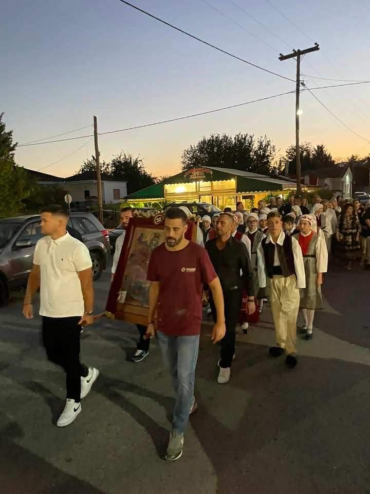 Η θρησκευτική τελετή τελέστηκε από τον πάτερ Αχίλλεα στον Ιερό Ναό του χωριού, με τους πιστούς να ακολουθούν με ευλάβεια και σεβασμό. Στο τέλος του Εσπερινού πραγματοποιήθηκε η καθιερωμένη περιφορά της εικόνας της Παναγίας γύρω από τον Ναό, ενώ στη συνέχεια ακολούθησε αρτοκλασία και ύψωμα.
