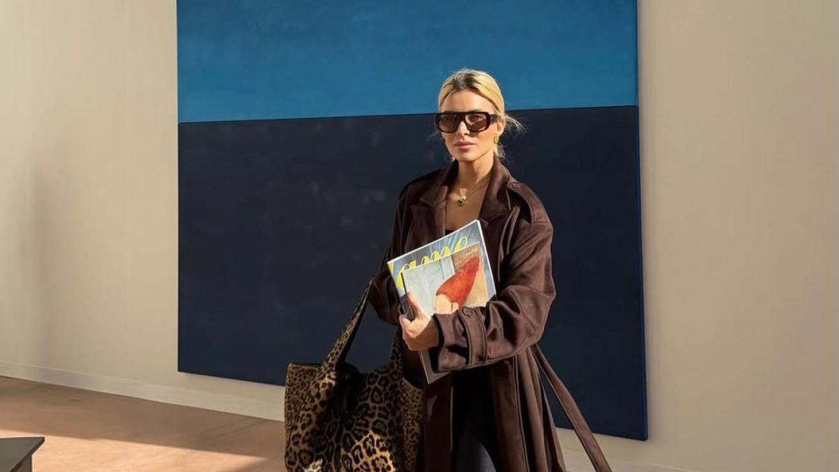 Στην πρώτη της εμφάνιση ποζάρει μπροστά σε ένα έργο τέχνης, ντυμένη σε σκούρους γήινους τόνους. Φορά ένα μακρύ καφέ παλτό με ζώνη στη μέση, μαύρο εφαρμοστό outfit και chunky μαύρες μπότες με τρακτερωτή σόλα, συνδυασμός που χαρίζει μοντέρνο και άνετο αποτέλεσμα. Ολοκληρώνει το look με μεγάλη leopard τσάντα και oversized γυαλιά ηλίου, δίνοντας στο σύνολο μια fashionable πινελιά που ταιριάζει απόλυτα στην ατμόσφαιρα του Παρισιού.