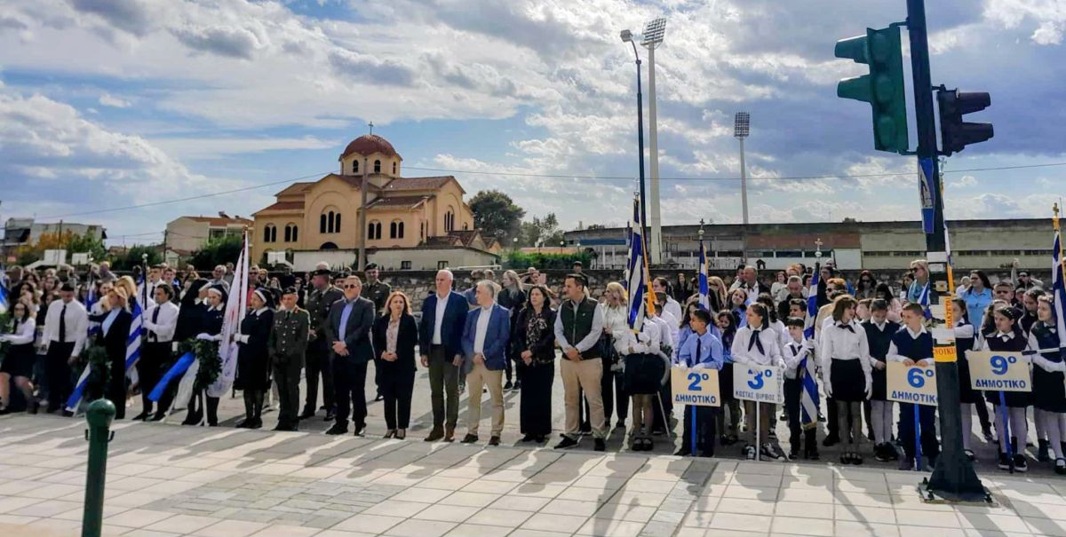 Στην εκδήλωση συμμετείχαν εκπρόσωποι των τοπικών αρχών, της εκπαιδευτικής κοινότητας και των ενόπλων δυνάμεων, αποτίοντας φόρο τιμής στους ήρωες που αγωνίστηκαν και θυσιάστηκαν για την ελευθερία της πατρίδας.Μπορεί να είναι εικόνα μνημείο και καμπαναριό