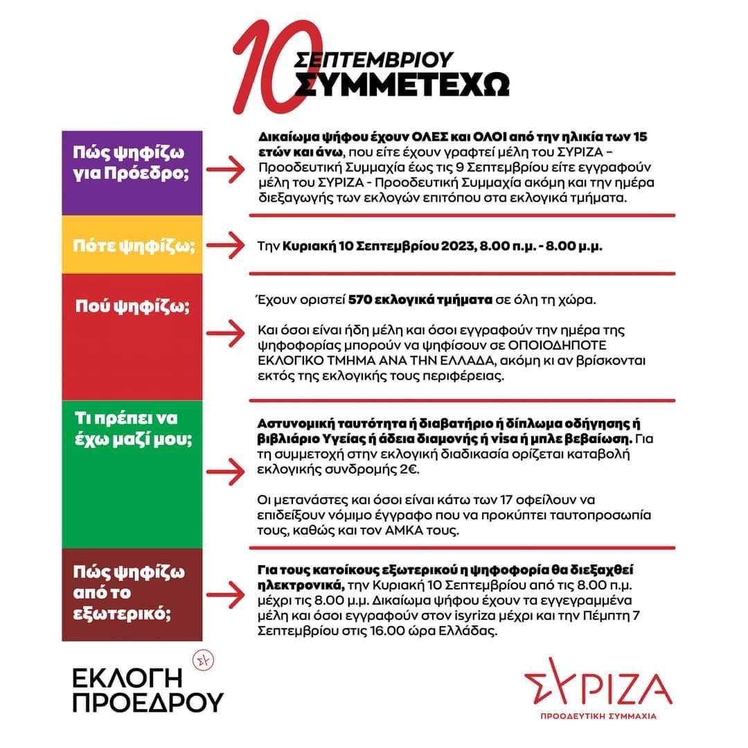 Την Κυριακή 10 Σεπτεμβρίου 2023 πραγματοποιούνται οι εκλογές για ανάδειξη προέδρου στο ΣΥΡΙΖΑ-Π.Σ.
