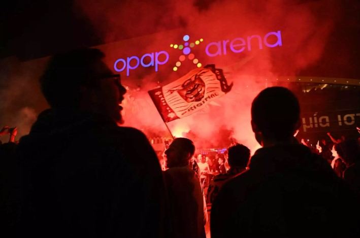 Δεν είναι υπερβολή να πούμε πως η νύχτα έγινε μέρα, με δεκάδες πυρσούς να ανάβουν μετά τη λήξη του παιχνιδιού.