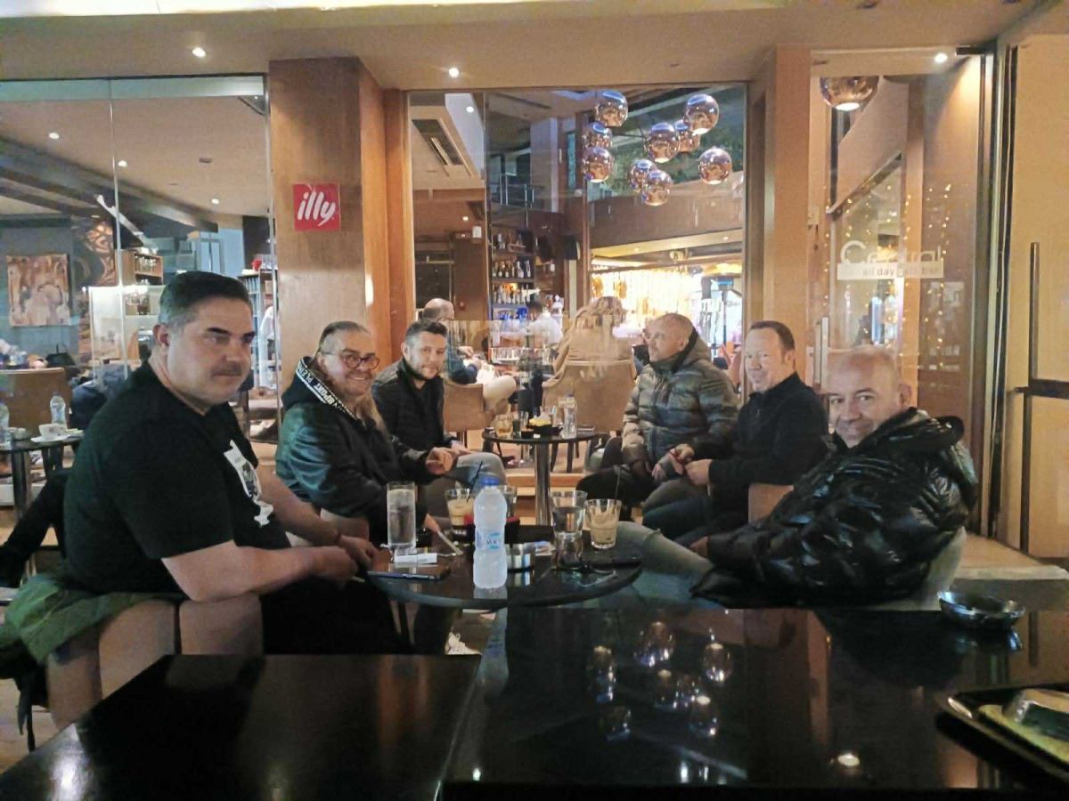 Ο Φώτης, που σήμερα δραστηριοποιείται στη Γερμανία ως επιχειρηματίας της εστίασης (και όχι μόνο…), γύρισε για λίγες μέρες στην πόλη, και φυσικά δεν θα μπορούσε να μην κάνει μια στάση στο Central. Εκεί τον περίμενε η παλιά φρουρά της τρικαλινής νύχτας — Κοντόπουλος, Μπάντης, Παπαδογιάννης ,Καλόγηρος — μια παρέα που μπορεί να “κατεβάσει” τόμους αναμνήσεων από άπειρα προσωπικές καταστάσεις από τις εποχές που τα φώτα στα μαγαζιά έσβηναν… μόνο όταν ξημέρωνε.