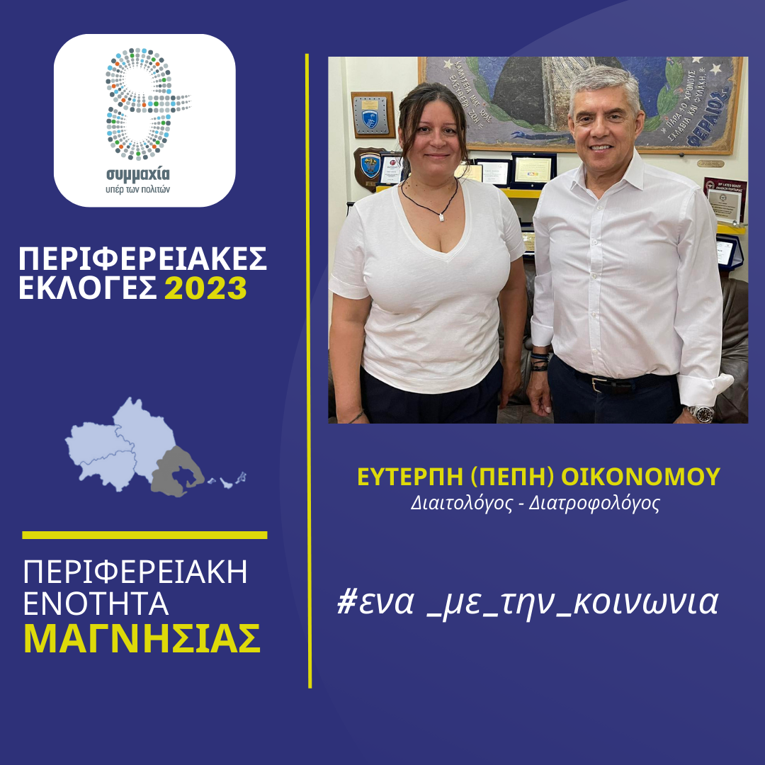 H διαιτολόγος – διατροφολόγος Bsc Ευτέρπη Οικονόμου υποψήφια περιφερειακή σύμβουλος στην Π.Ε. Μαγνησίας με τον Κώστα Αγοραστό
