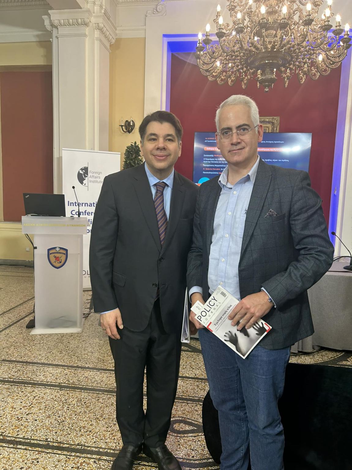 Mε τον Αμερικανό Πρέσβη στην Αθήνα, Γεώργιο Τσούνη, στην τελετή έναρξης του 4ου Διεθνούς Συνεδρίου Θρησκευτικής Διπλωματίας που έλαβε χώρα σήμερα, στη Λέσχη Αξιωματικών Ενόπλων Δυνάμεων Λαεδ Λεσχη Αξιωματικων Ενοπλων Δυναμεων. Το Συνέδριο διοργανώνεται στην Αθήνα, στις 12 και 13 Μαρτίου 2024, από το Ινστιτούτο Εξωτερικών Υποθέσεων, στο οποίο προεδρεύει ο Λουκάς Κατσώνης, Loukas Katsonis εκδότης του «Policy Journal» Policy Journal ,περιοδικού για τη Διεθνή Πολιτική και τη Διπλωματία, το οποίο αποτελεί τη συνέχεια της ελληνόφωνης έκδοσης του “Foreign Affairs”. Στο τρέχον τεύχος του περιοδικού δημοσιεύεται άρθρο μου, υπό τον τίτλο «Οι ποταμοί του χρόνου στη Μέση Ανατολή», το οποίο είχα την ευκαιρία να θέσω υπόψιν του Αμερικανού Πρέσβη, υπογραμμίζοντας, παράλληλα τη σημασία των ανθρωποκεντρικών μηνυμάτων της θρησκευτικής πίστης στην προσπάθεια για την οικοδόμηση ενός πιο αλληλέγγυου παγκόσμιου πλαισίου, απαλλαγμένου -στο μέτρο του δυνατού- από τις παθογένειες όχι μόνον των εμπόλεμων συγκρούσεων και της μισαλλοδοξίας αλλά και των κάθε είδους εξαρτήσεων και των συνοδών προεκτάσεων της διεθνούς εγκληματικότητας.
