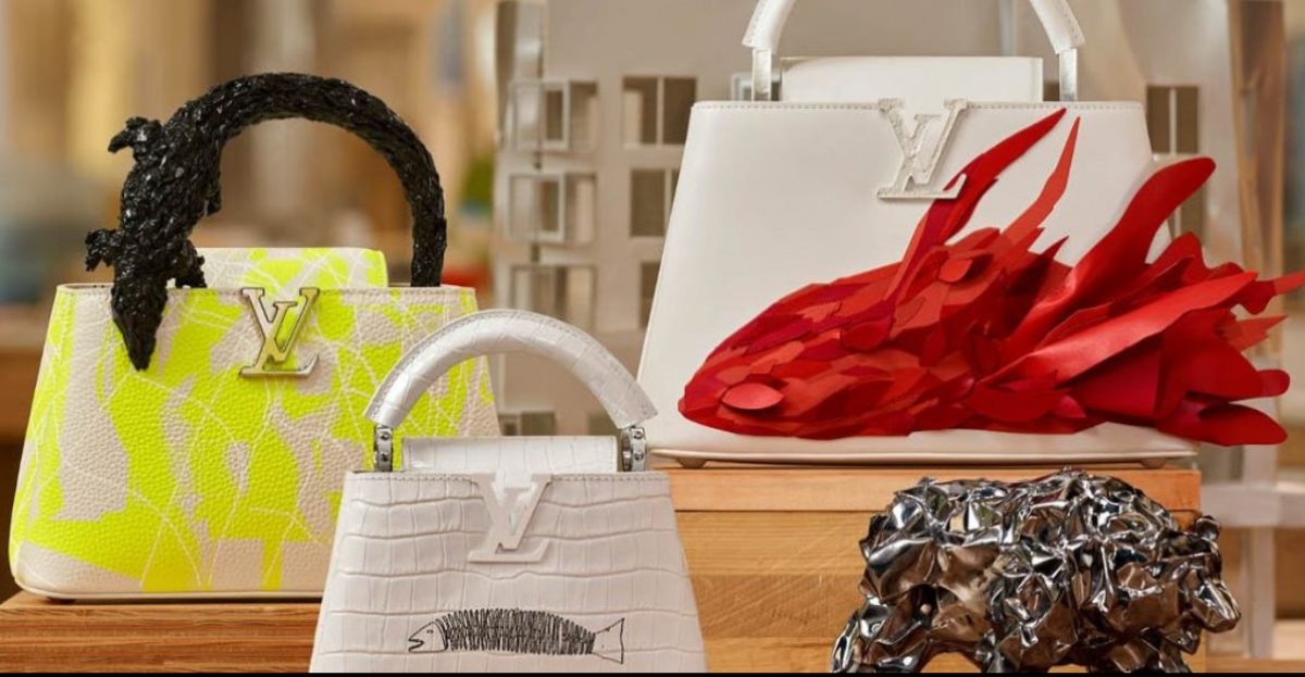 Yayoi Kusama, Jeff Koons και Takashi Murakami είναι κάποια πολύ γνωστά ονόματα που έχει συνεργαστεί κυρίως για τα αξεσουάρ της. Όμως, και η εκτίμηση της στην αρχιτεκτονική δεν περνάει απαρατήρητη μια και για τα καταστήματα της, έχει κατά καιρούς συνεργαστεί με αρχιτέκτονες αιχμής. Επίσης να μη ξεχνάμε την ίδρυση του  επιβλητικού Fondation Louis Vuitton στο Παρίσι με εξαιρετικά εκθέματα σύγχρονης τέχνης και σχεδιασμένο από τον Frank Gehry. Louis Vuitton X Frank GehryΟ θρυλικός και ίσως ο πιο επιδραστικός σύγχρονος αρχιτέκτονας, στενά συνδεδεμένος με τον γαλλικό οίκο, κλήθηκε να ερμηνεύσει εκ νέου την εμβληματική τσάντα Capucines και το έπραξε, ομολογουμένως, με τον καλύτερο τρόπο, δημιουργώντας μια συλλεκτική μικρή συλλογή απίστευτης έμπνευσης που παρουσιάστηκαν στο φετινό Art Basel στο Μαϊάμι.