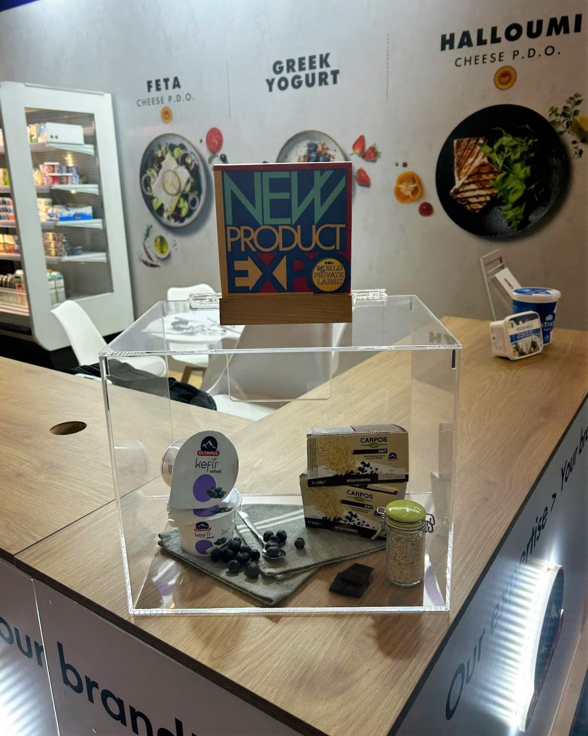Δύο νέες κατηγορίες, πέραν των βασικών όπως είναι η φέτα, το στραγγιστό γιαούρτι και το χαλλούμι, οι οποίες κάνουν τα πρώτα τους βήματα στις αγορές του εξωτερικού, παρουσίασε στην έκθεση PLMA η θεσσαλική Ελληνικά Γαλακτοκομεία, ηγέτιδα του κλάδου στη χώρα μας. Πρόκειται για τα spoonable κεφίρ με γεύσεις καθώς και τα ζυμούμενα προϊόντα βρώμης. Μάλιστα, το spoonable kefir Olympus με γεύση μύρτιλο αλλά και το spoonable oat Carpos βραβεύθηκαν ως νέα προϊόντα και βρίσκονταν στον ειδικό χώρο New Products Expo κατά τη διάρκεια της έκθεσης.Λ.Ε. thessaliaeconomy.gr (με πληροφορίεες από FnB Daily)