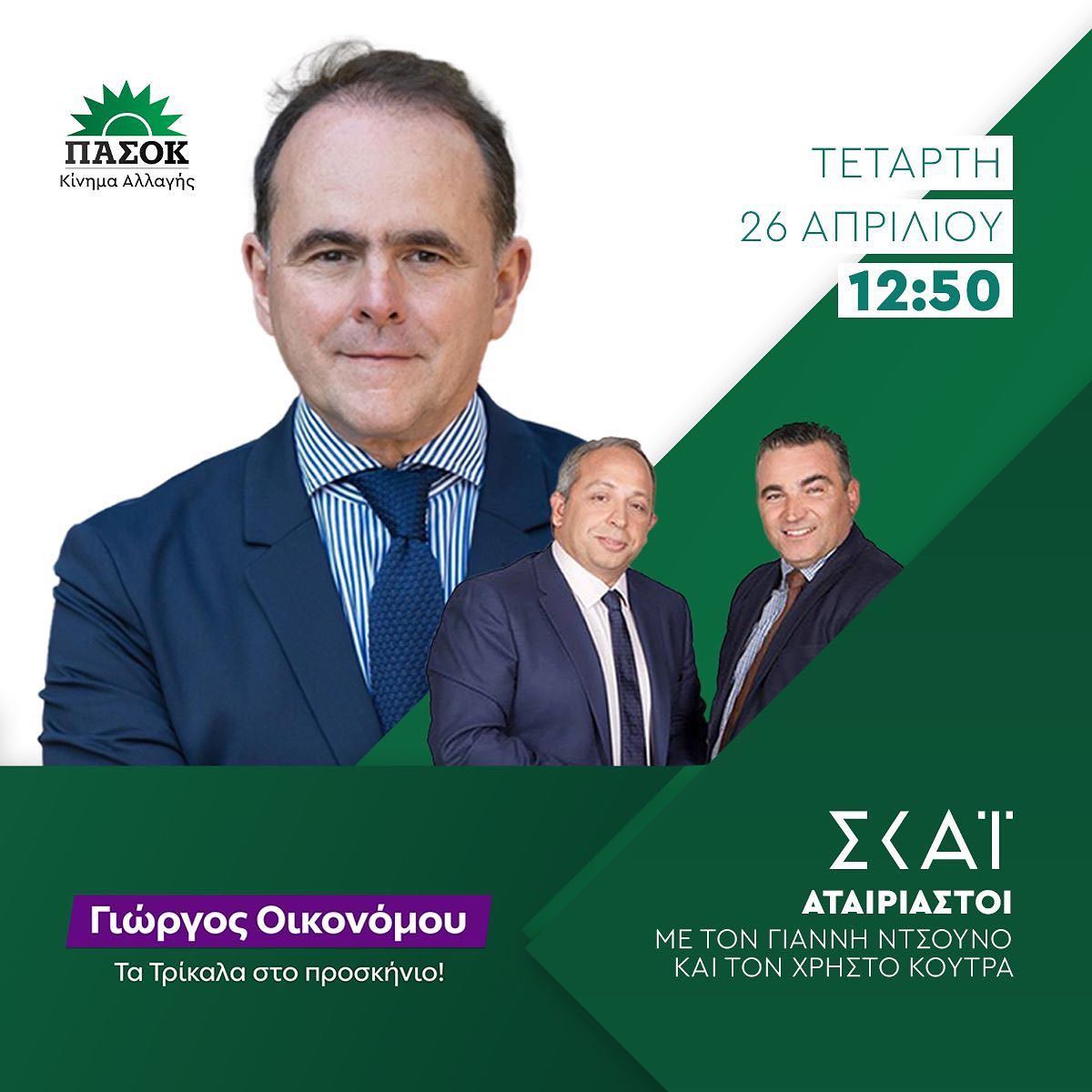 Στους ”Αταίριαστους” το γνωστό δίδυμο Κούτρα- Ντσούνο, στον ΣΚΑΙ, θα δώσει συνέντευξη την Τετάρτη στις 12:50 το μεσημέρι ο υποψήφιος βουλευτής του ΠΑΣΟΚ Γιώργος Οικονόμου. Το κλίμα θα είναι αμιγώς πολιτικό και ο κ. Οικονόμου πάει με… φόρα μετά την μεγάλη συγκέντρωση του Νίκου Ανδρουλάκη στο Μουσείο Τσιτσάνη στα Τρίκαλα.
