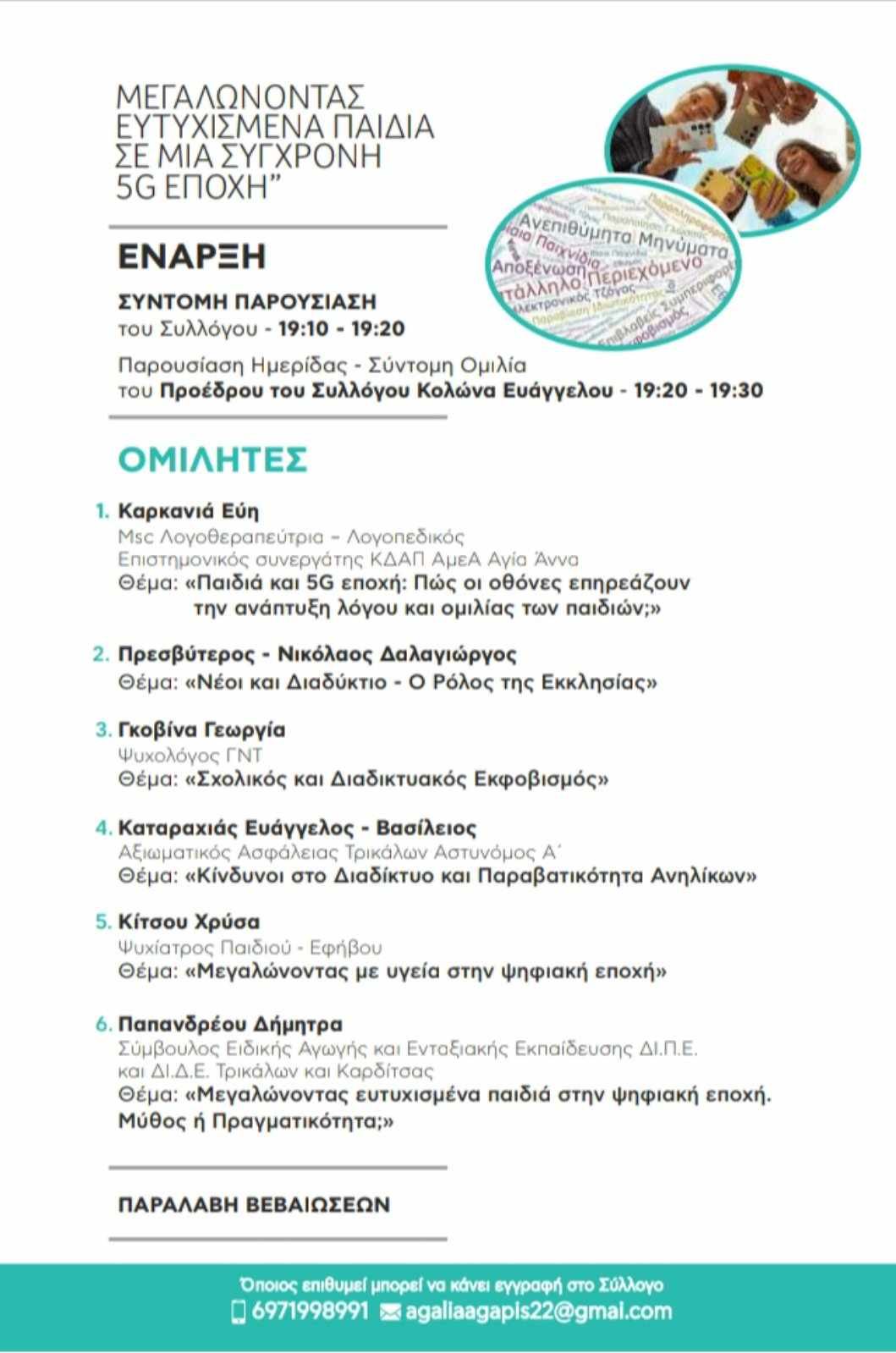To Σάββατο η 2η Ημερίδα του Συλλόγου Αγκαλιά Αγάπης : Μεγαλώνοντας ευτυχισμένα παιδιά σε μια σύγχρονη5G εποχή, με εξαιρετικούς ομιλητές.