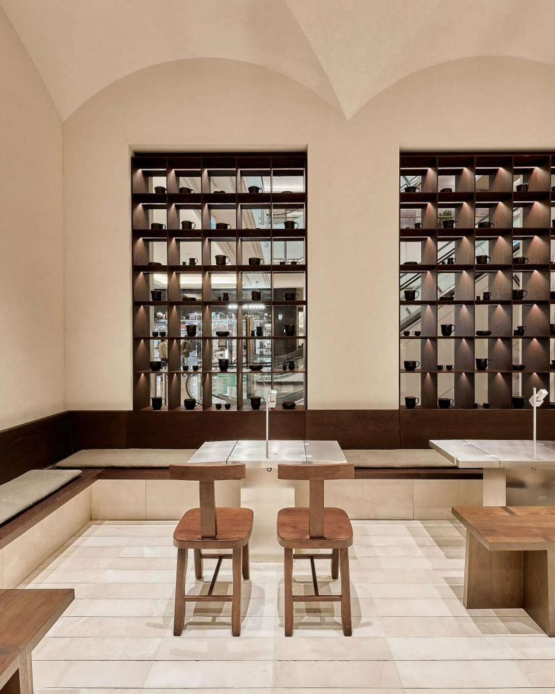 Εξαιρετικά βιώσιμο -σχεδιασμένο έτσι ώστε να περιορίζεται στο μέγιστο, τόσο η σπατάλη νερού όσο και ενέργειας- το καφέ των Zara έχει έναν μοναδικό χώρο με μίνιμαλ design, μάρμαρο, terrazzo πάγκους, ξύλο και φυσικά έναν ιδιαίτερο καλλιτεχνικό αέρα.